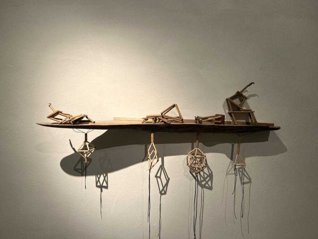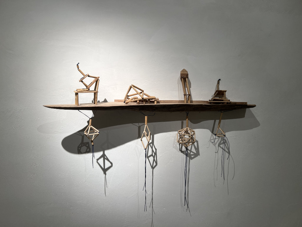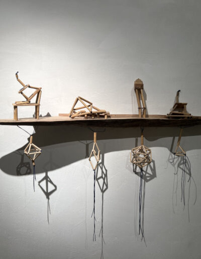 transformation, and space for a silent moment of contemplation. Forms can leap toward unknown configurations. I build geometric wooden structures that collapse upon themselves.
